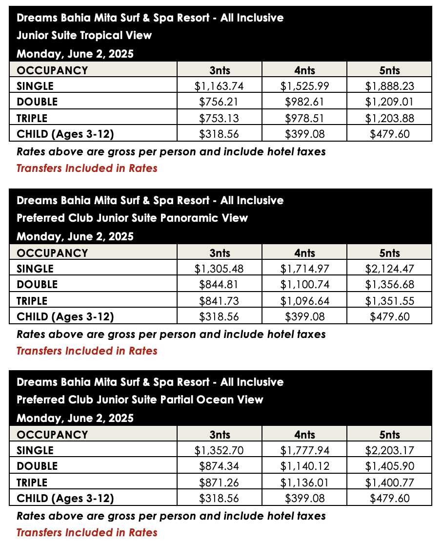 ROOM RATES FOR DREAMS & SECRETS BAHIA MITA SURF & SPA RESORT